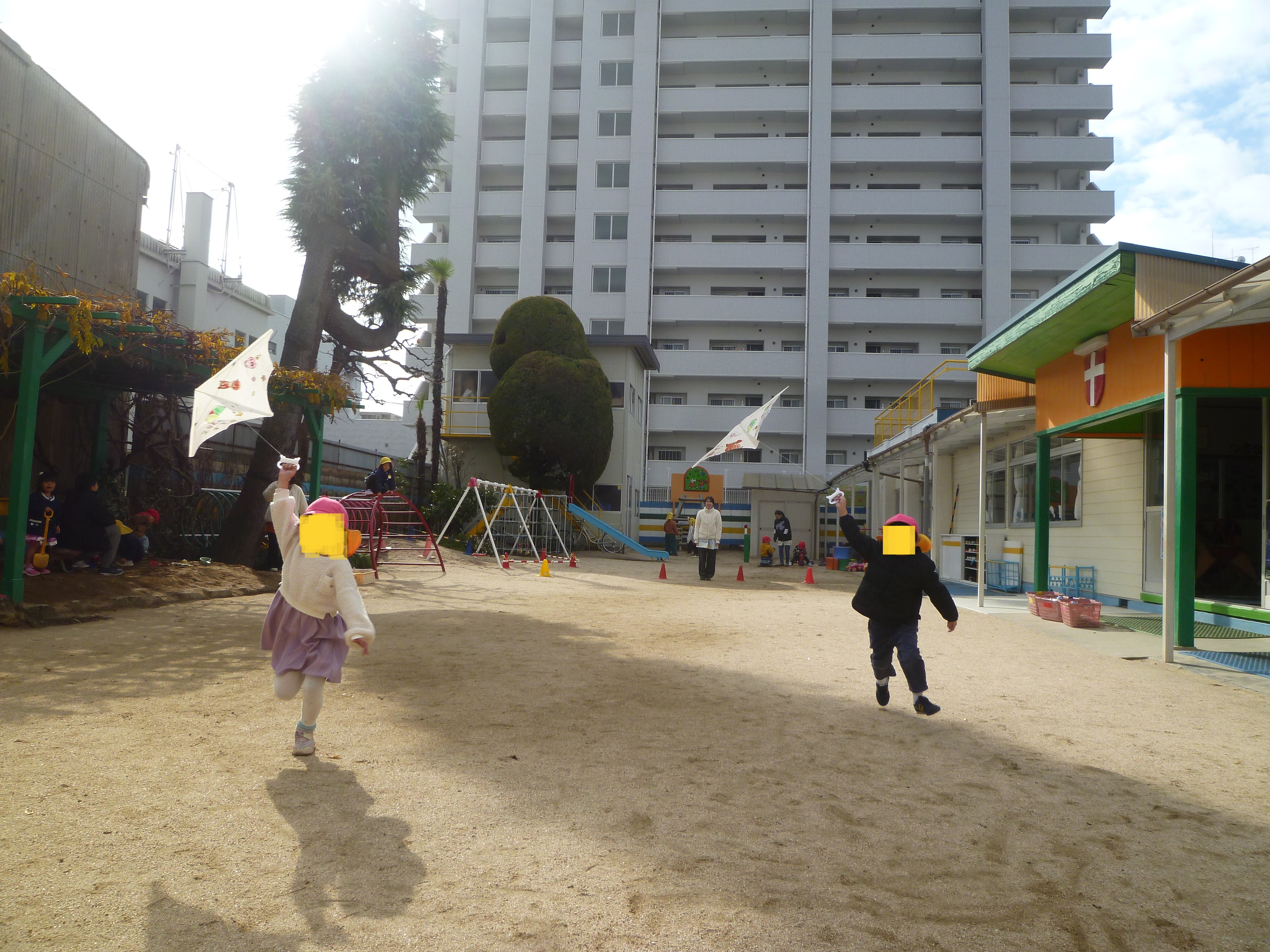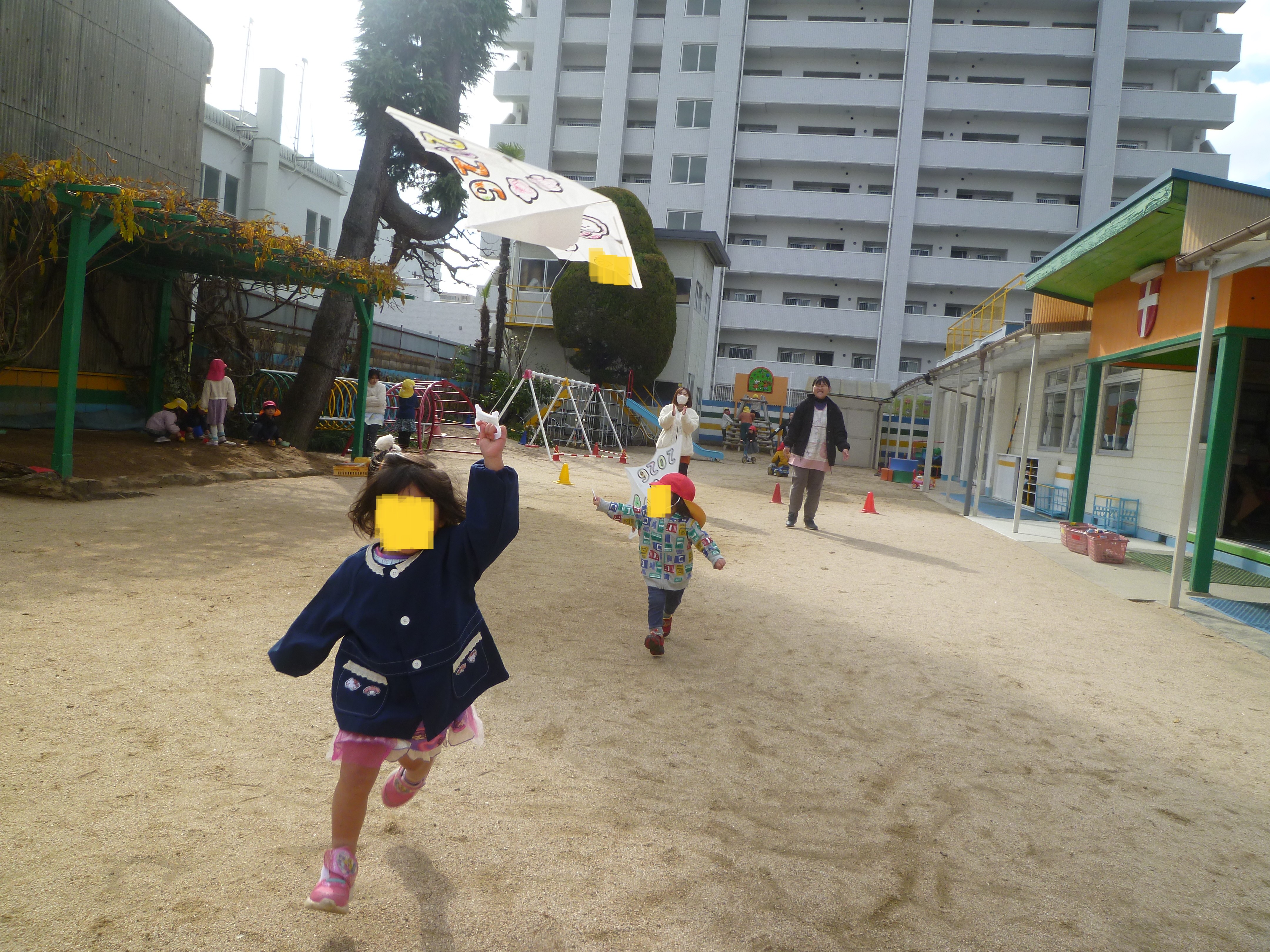 凧制作をして園庭で凧揚げをしたり、年賀状を書いたりと、伝統行事に触れて過ごしています。