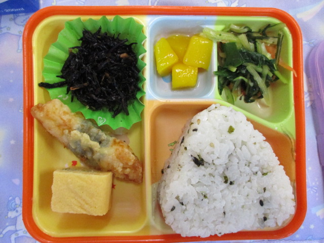 1月より給食弁当の業者さんが変更し、子どもたちも以前のお弁当と比べて違うところを探したり、新しいメニューを楽しみながら食事をしています!
